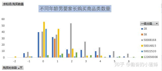 可以看出,婴儿用品大部分集中在0岁到1岁之间,这里1代表的是半岁到1岁半之间的,0代表的是出生前后半岁的,那说明婴儿在出生前到1岁半之间购买量是最大的,并且对于15结尾的产品在0和1之间需求量很大,28和68产品有生前预购。