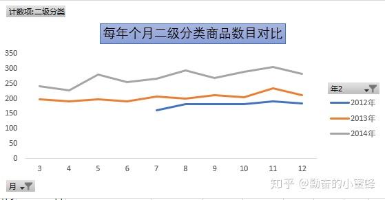 收集证据:下面是每年各月的二级分类商品数目对比