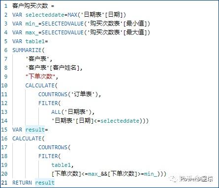 建立一个[客户购买次数]的度量值,如下图: