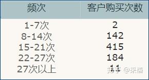 根据订单表,计算出截止某个日期,购买次数为1-7次、8-14次、14-21次……的客户分别有多少?