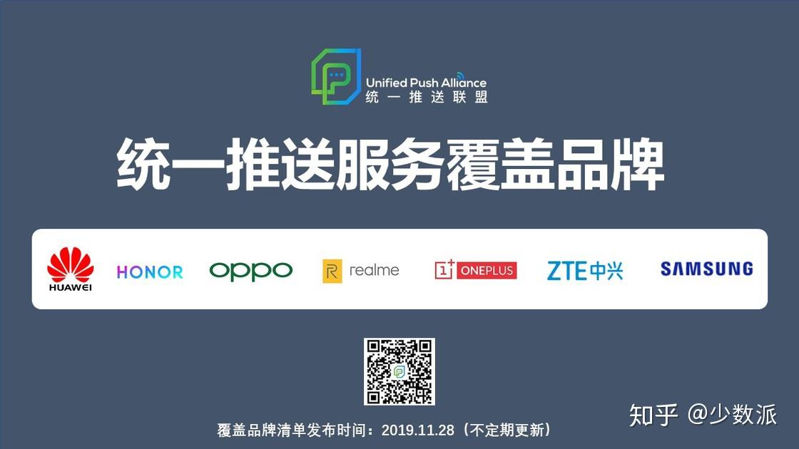 截止到 12 月 24 日,已经有 9 个手机品牌相继完成了统一推送适配。他们分别是:华为、荣耀、OPPO、realeme、一加、中兴、三星、vivo、iQOO。暂未接入的还有小米、魅族、努比亚、联想、酷派、坚果等。其中联盟公众号有表示小米正在适配中,坚果也在发布会声明会接入。