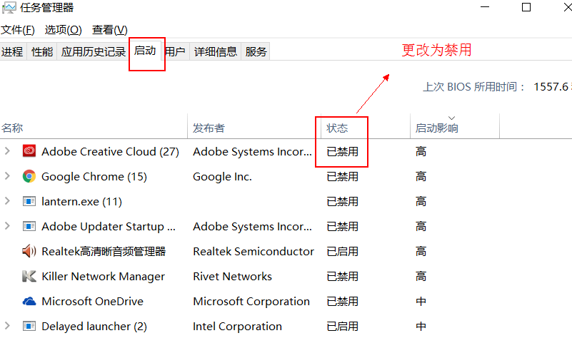 更改不需要开机启动的项目为开机禁用即可。