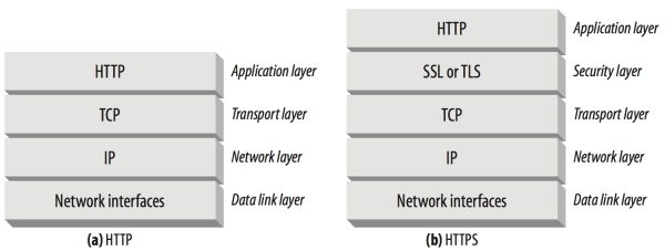 HTTPS 协议栈与 HTTP 的唯一区别在于多了一个安全层(Security Layer)—— TLS/SSL,SSL 是最早的安全层协议,TLS 由 SSL 发展而来,所以下面我们统称 TLS。