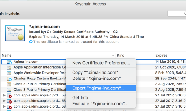 第一步:从 「Keychain Access」中导出一个证书,格式选择 pem