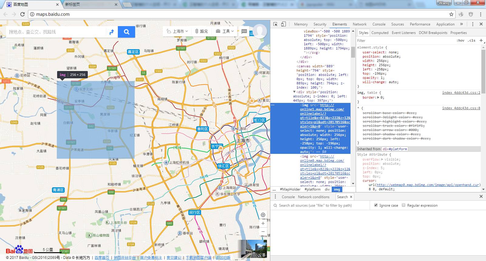 举例:在百度地图页面,如果想要知道某个区域对应的地图瓦片的X、Y序号怎么办? 这个工具会恨简单地帮到你: