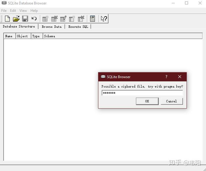 6.然后打开sqlcipher.exe软件,用它打开EnMicroMsg.db数据库,输入第五步得到的密码。