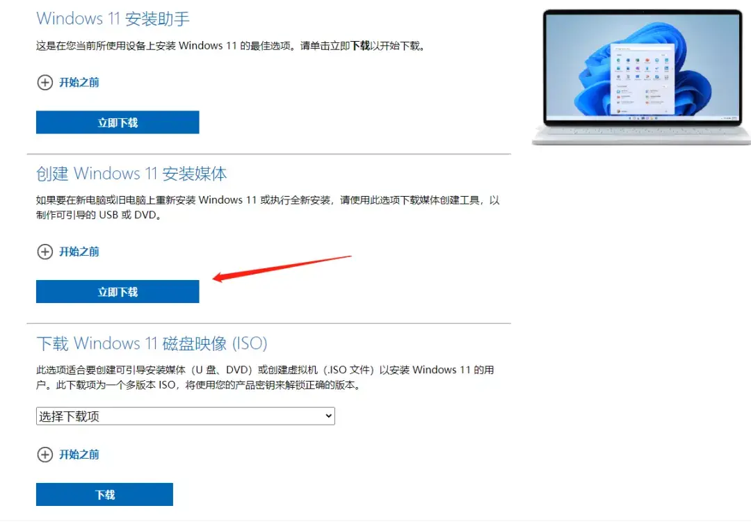 微软官方网站,打开网站我们可以看到有介绍,3种方法任选,这里还是以U盘系统为例。