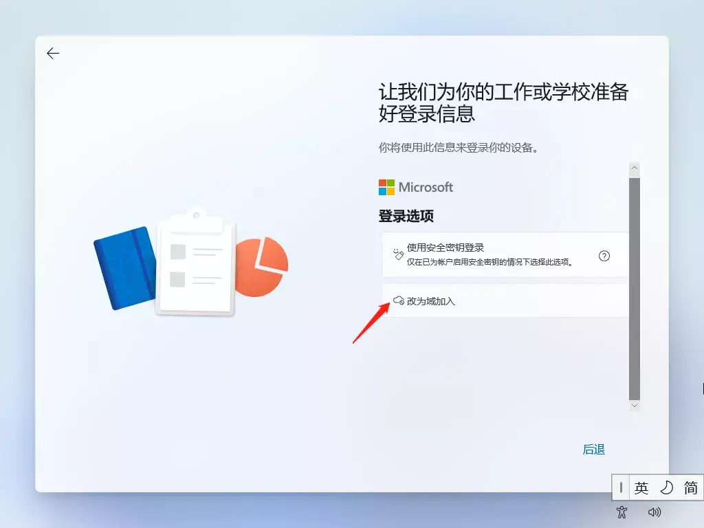 这里我们选择登陆选项,改为域,则不用微软账号登陆。