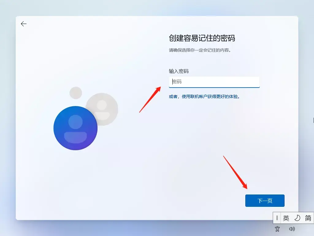 密码这里大家可以自己输入,也可以不输入直接下一步,开机则没有开机密码、