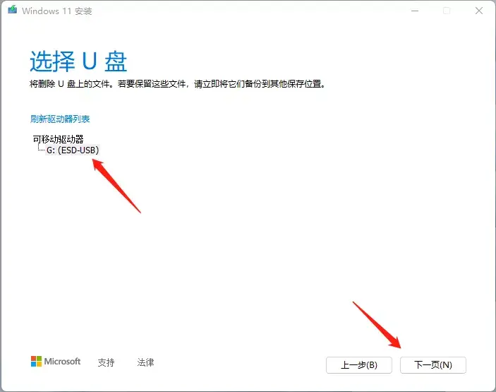 第4步、选择U盘,点击下一步。