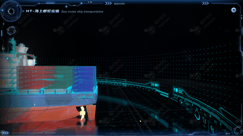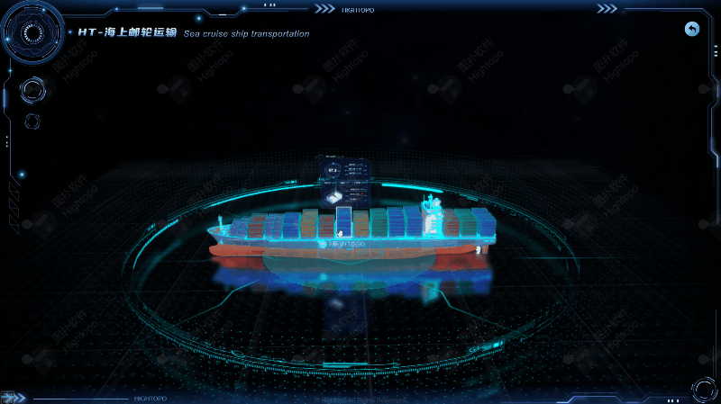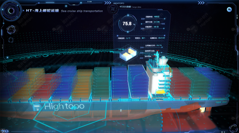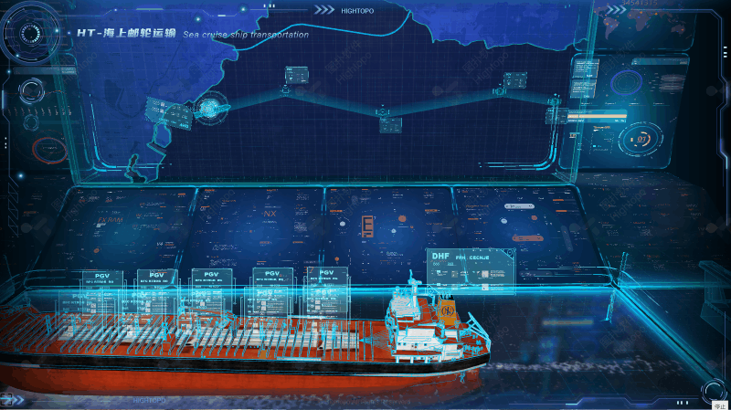 由于集装箱体积大、货品多,因此航行安全是重点。对航行中集装箱船的管控,Hightopo 也有一套完整的可视化解决方案,助力货船的绿色低碳安全运输。