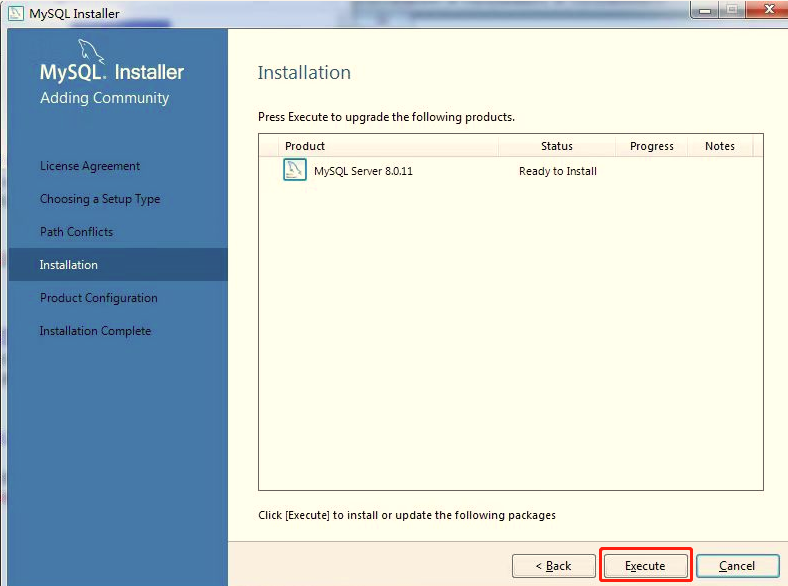 5.点击Execute开始安装