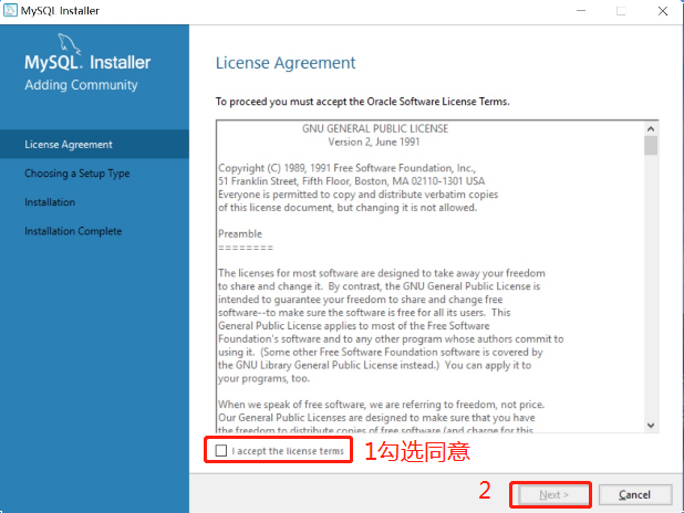 2.按下图勾选同意协议,然后下一步。