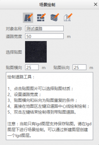 输入道路名称、道路宽度(左侧路沿到右侧路沿的距离),点击选择贴图: