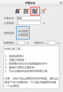 场景绘制,就是绘制一些基本的矢量,线和面。但是线和面可以进行拉伸并贴图。这样绘制的结果,可以在一个场景中作为一些组件存在。当前能够支持保存贴图的图层类型为LSV的私有图层类型:lgd。