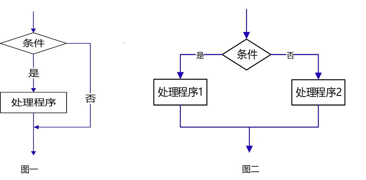 二元选择结构,从多个程序(判断条件)中选择一个执行,流程依据某些条件,分别进行不同处理程序。