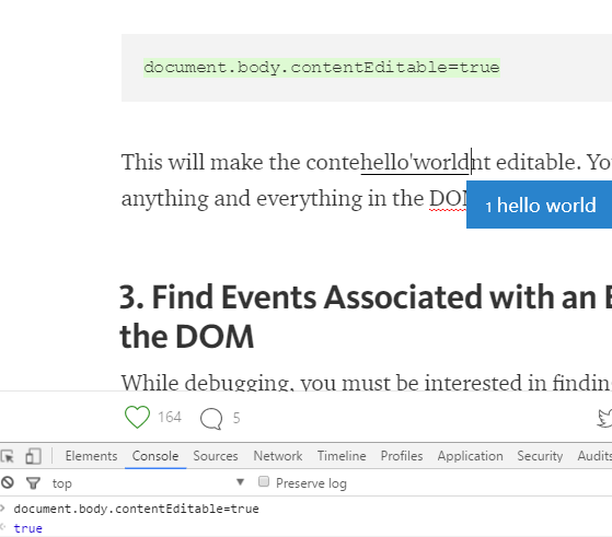 你可能经常会困惑你到底能不能直接在浏览器里更改网页的文本内容。答案是肯定的,你可以只通过一行简单的指令把Chrome变成所见即所得的编辑器,直接在网页上随心所欲地删改文字。