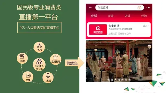 对于淘宝直播,大家都不陌生。淘宝直播简单来说就是把大家开店卖货这样一个实时的可交互的商业行为搬到了线上。经过几年的努力,我们将淘宝直播打造成了行业领先的专业消费类直播平台,而且建立了围绕商家、机构、主播和直播基地的生态系统。