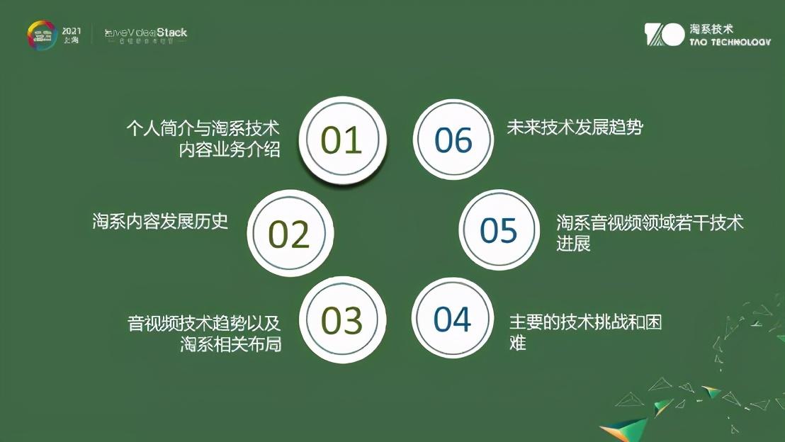 首先,得益于淘系技术和LiveVideoStack组委会的盛情安排,使得我和在座各位有了沟通的机会,非常感谢。我会首先做一个简单的自我介绍和业务介绍,之后简单交代淘系内容的业务以及相关技术、尤其是音视频技术的发展历史。在这段发展历程中,我们也围绕着音视频技术的主要趋势做了很多技术方面的布局,也和大家一样面临着不少技术挑战和问题,在解决这些问题时也取得了一定的成绩。最后我想和大家讨论音视频技术未来的发展趋势。