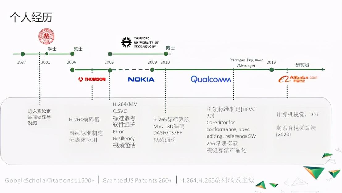 个人来讲,我在视频编码、视觉和图像处理方面发表了一系列的论文、专利,以及标准技术提案,相关的著作获得过万次的引用。