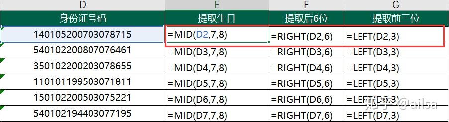 left right mid 实例: 身份证号码提取案例