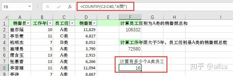 计算以上有多少个人是A类员工