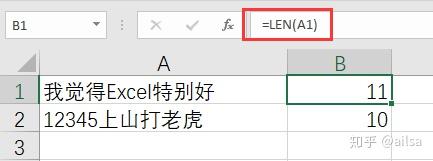 功能:返回文本字符串中字符的个数,也叫文本长度,不分中英文和数字,都是1个字符