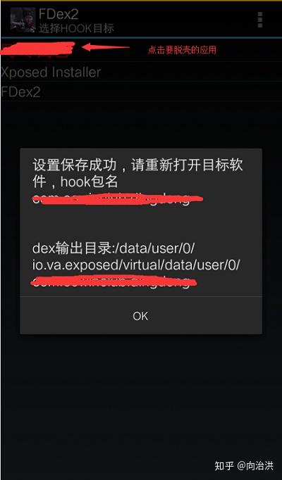 在VirtualXposed中安装要脱壳的应用,具体和上面的步骤一样。然后,启动VirtualXposed中的FDex2,并配置要脱壳的应用。