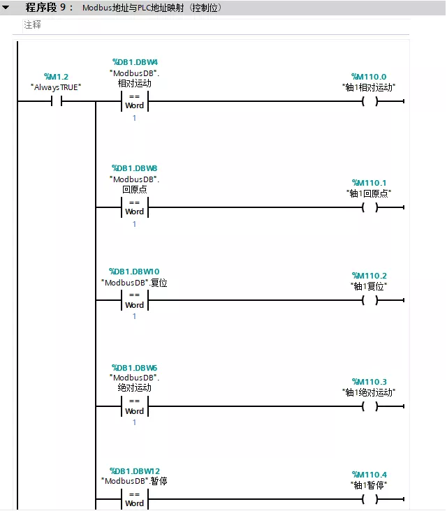 - Modbus地址与PLC地址的映射(控制位)