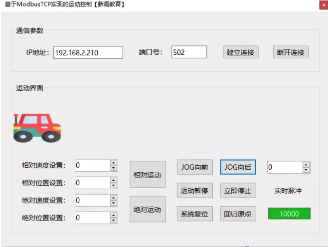 - 点动运动模式:设置点动运动速度,按住正向点动或者反向点动,实现电机的点动运动。