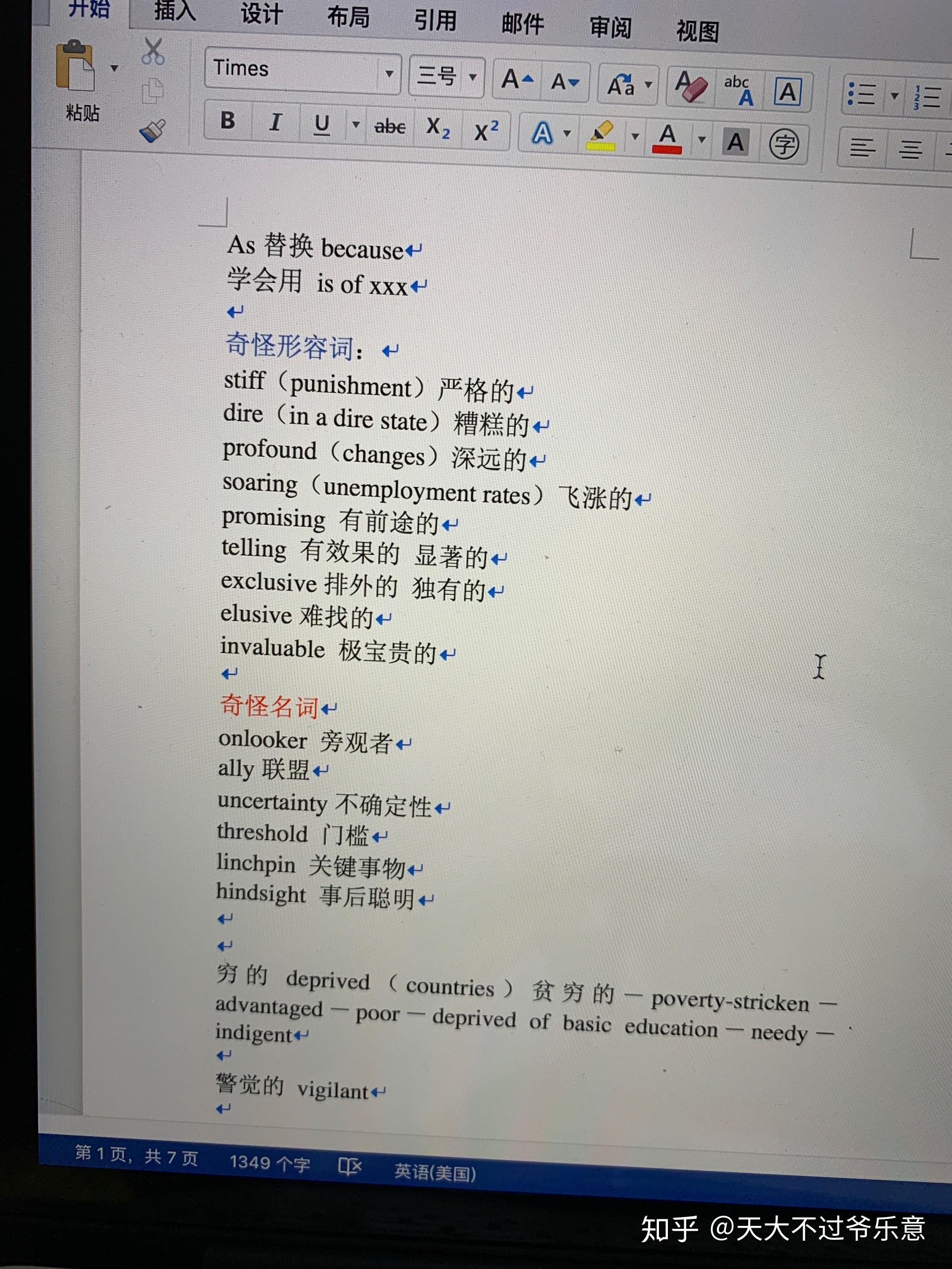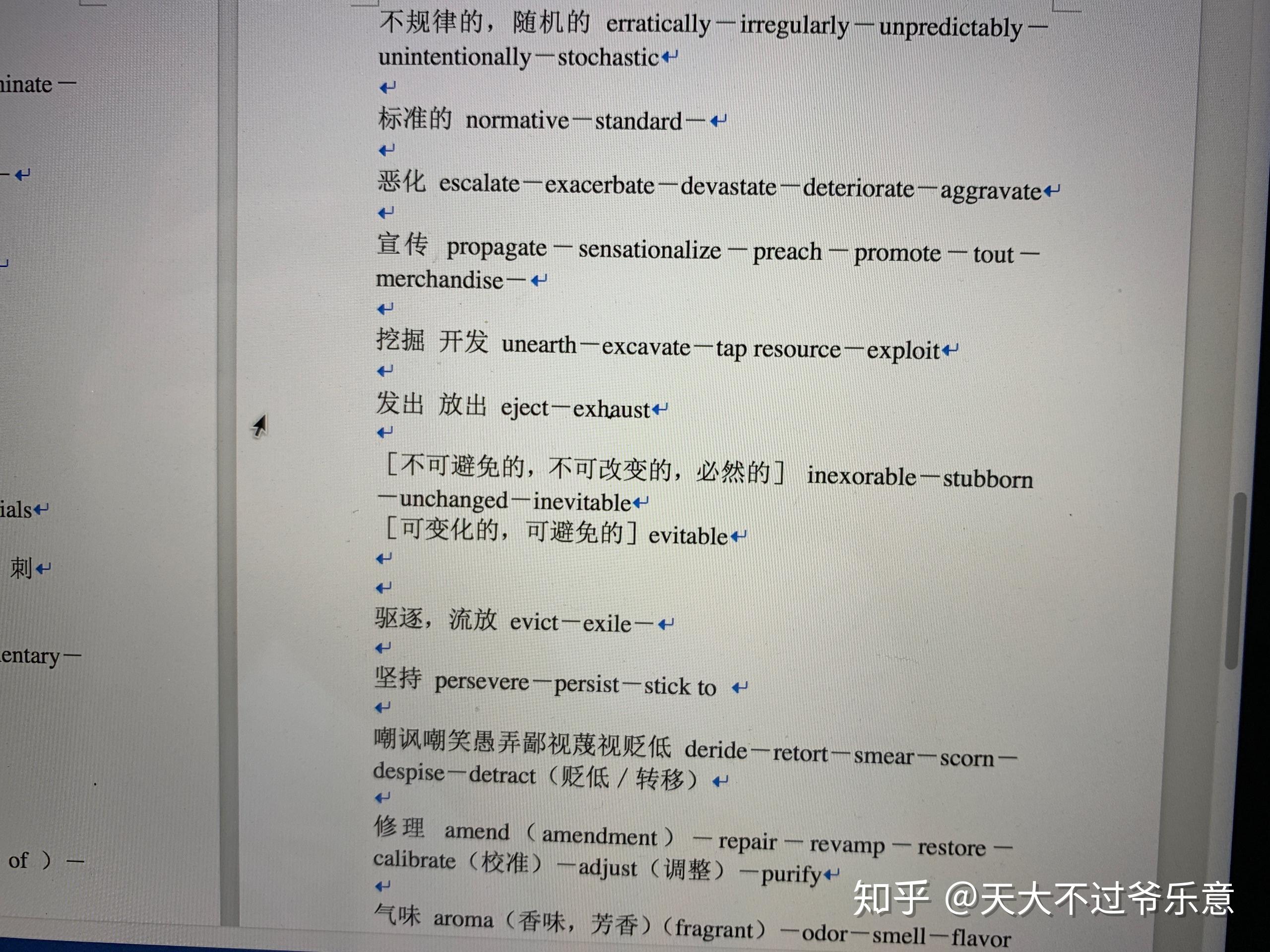 当你写作突然想到一个词,又记得自己总结过一个同意替换,但是当你翻开这个本子……检索tm得检索一万年。所以,我后期的同意替换都放在了电脑上。感谢word这么好的软件,又能检索又能修改,还容易变更位置: