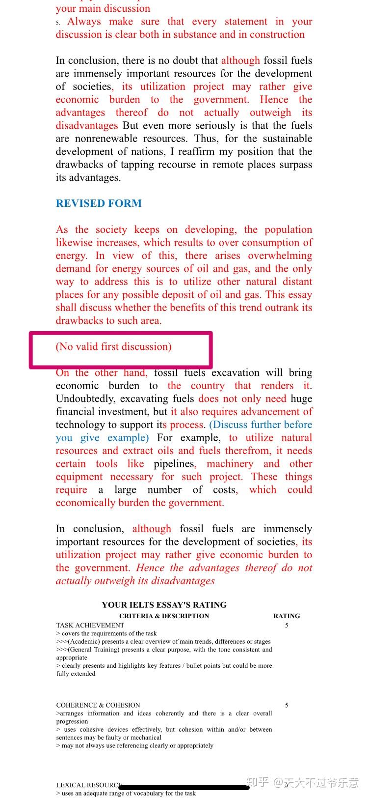 我当时真是感动得都要哭出来了!!!我不怕被打低分,也不怕被怼没逻辑,我需要点就是这种老师啊我k!!!这个手机浏览还有很多看不出来的东西,他红笔标注的都是觉得我论证不过关,亲自给我改的!!!
