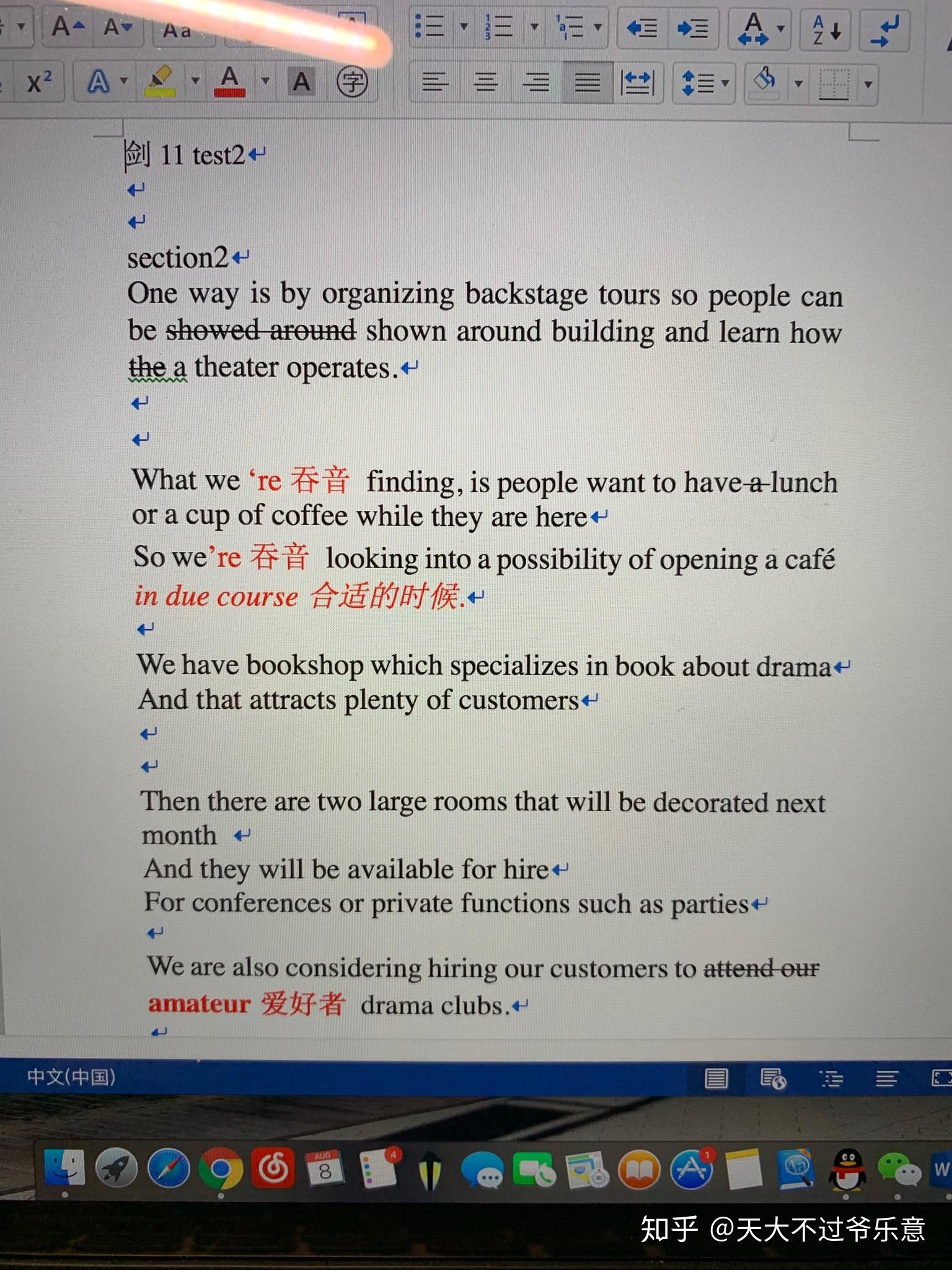 然后你会发现重复按照上面的套路走,如果你的词汇语法一般的话,考到6是上限。我写过大概10几篇,到此完成一篇作文对我不是难事了,但自己怎么看也都是6的水平,拿去给淘宝外教p也都是5.5-6(很多修改得很垃圾,但是打分我觉得还是客观的)