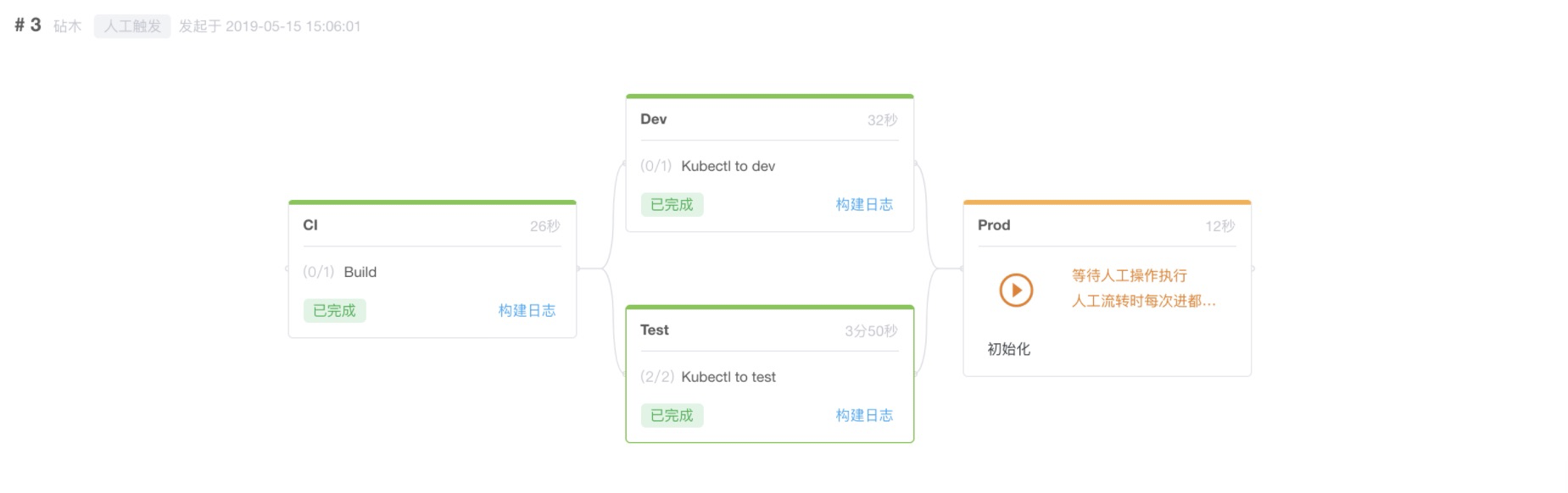 当Dev以及Prod阶段均成功以后,运维人员就可以按需对生产环境进行部署。