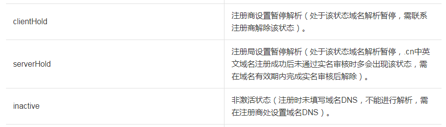 域名状态:如果域名处于clienthold、serverhold、inactive三种状态,则代表是因为域名状态异常导致解析异常。