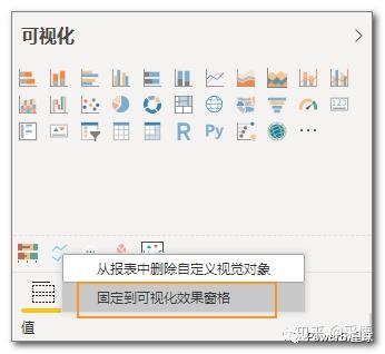 添加自定义图表后,右键>固定到可视化效果窗格,