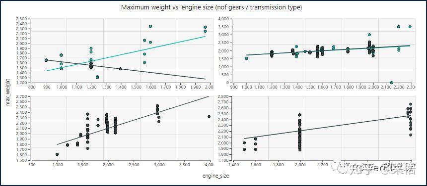 Craydec Regression Chart是带有简单线性回归的散点图/散点图,可以处理大型数据集,您可以使用小倍数图来探索和报告多个属性。