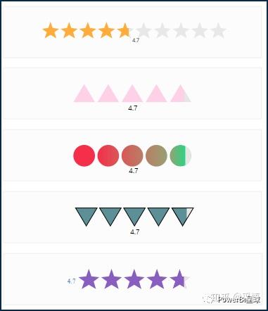 可以选择不同的指示形状,来展示评级或分数。