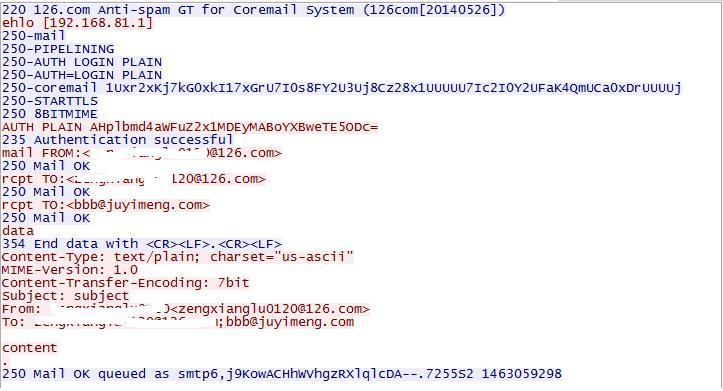 工作中习惯抓包分析了分析问题了,这个也抓包看看,可以看到,python已经把smtp协议封装得相当完美了,python只要几行代码就可以实现发邮件功能。