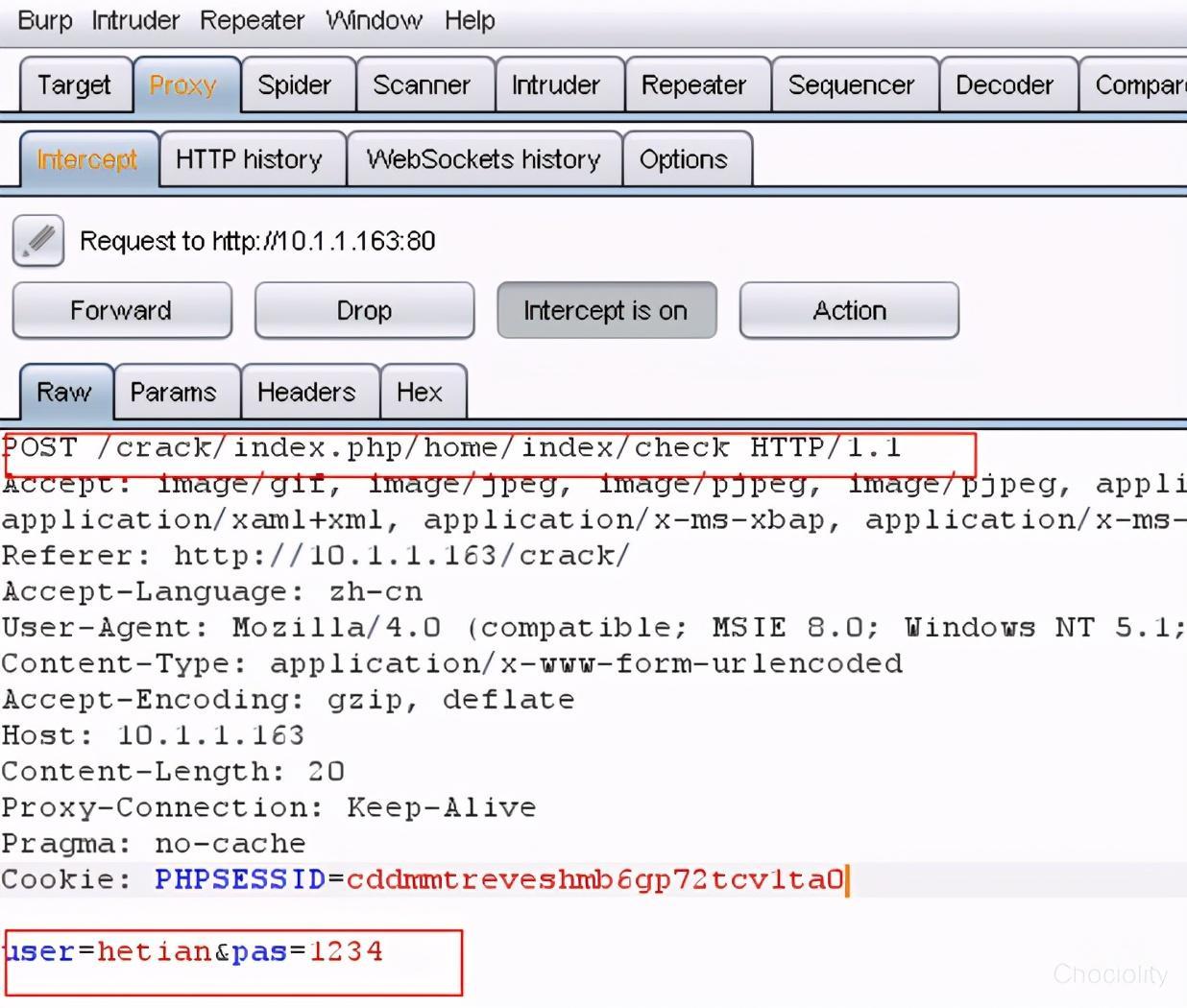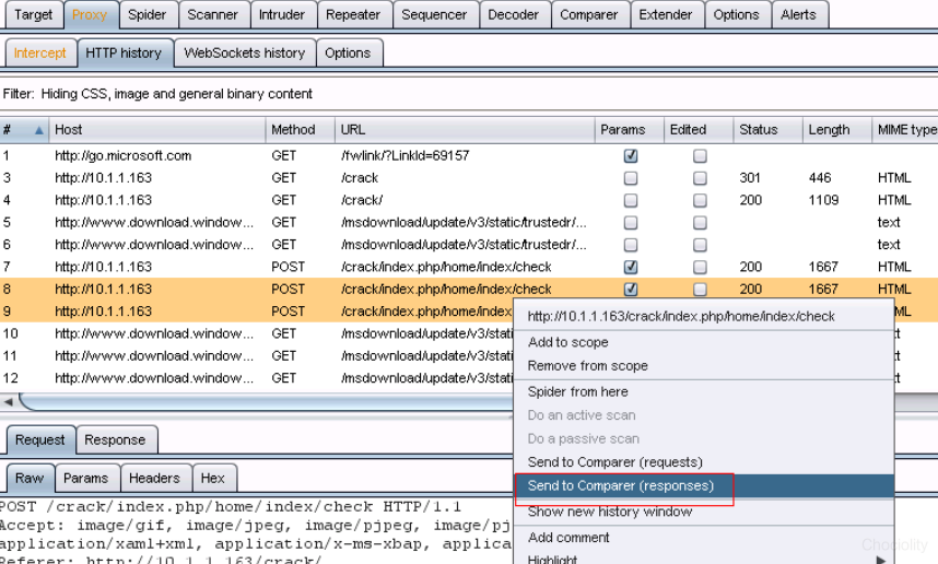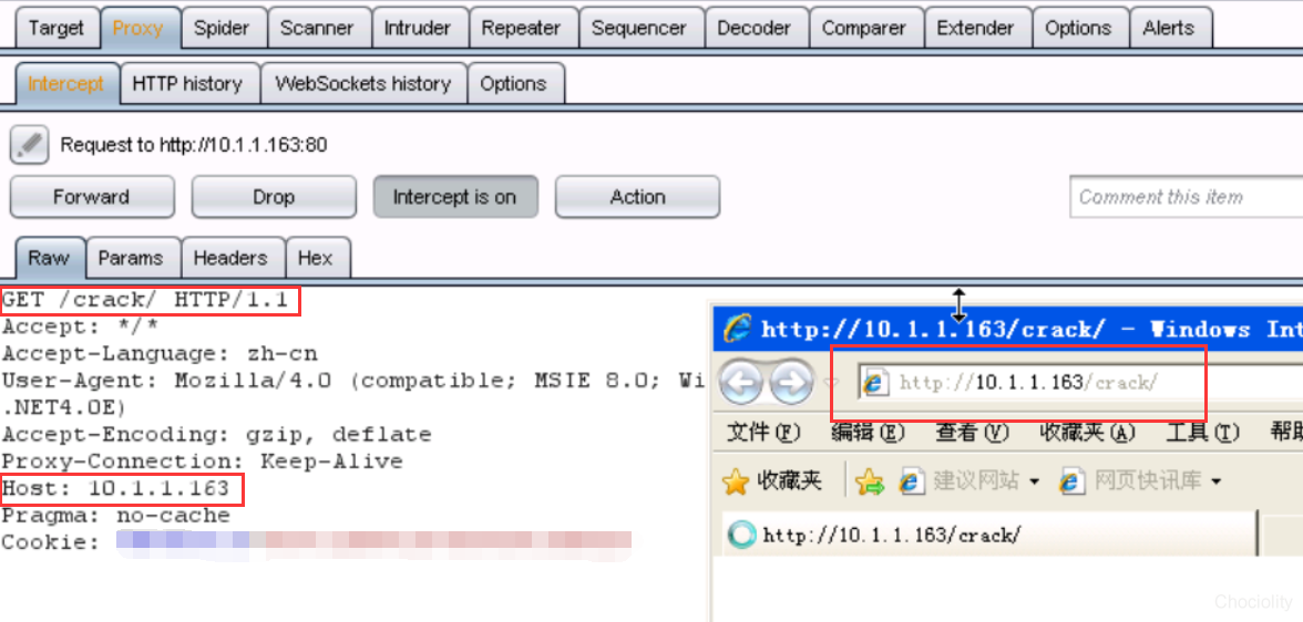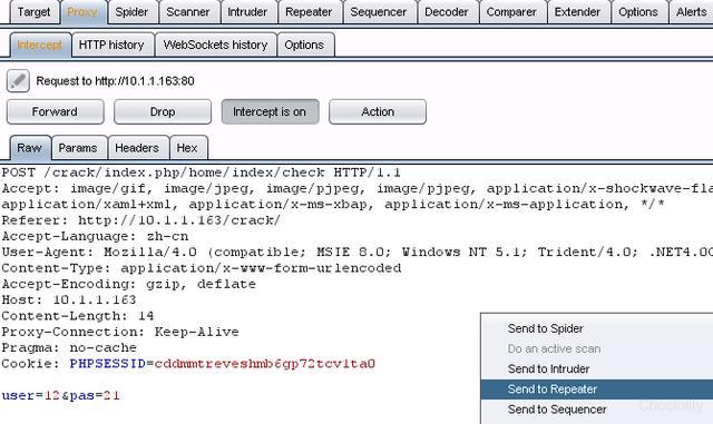用浏览器访问:10.1.1.163/crack,我们会在burp中看到: