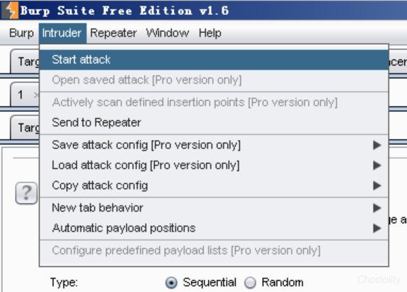 Payloads设置: 选择怎样的字典或者payload,是这个模块要做的事情。Payload type下拉列表框为我们提供了常用的payload 类型,视情况选择即可。