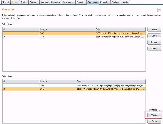 Comparer,通常是通过一些相关的请求和响应得到两项数据的一个可视化的“差异”。