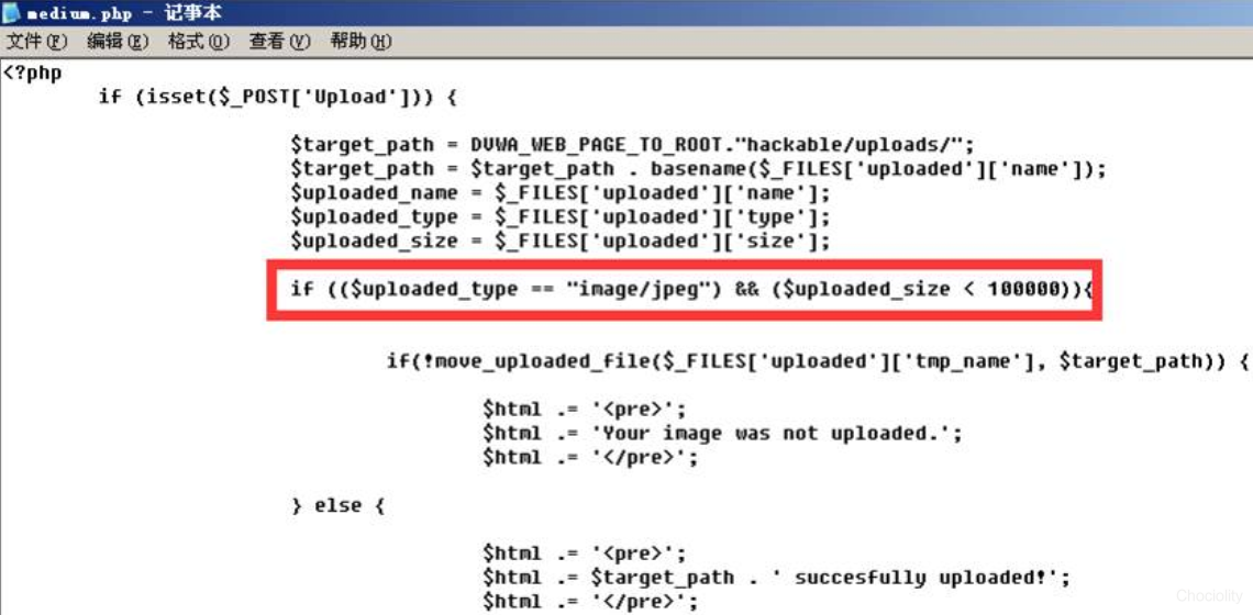 2.了解服务端MIME类型检测: 服务端MIME检测类型图片上传过程中http包的Content-Type是否为image/jpeg,如果是就可以成功上传。相关源代码: