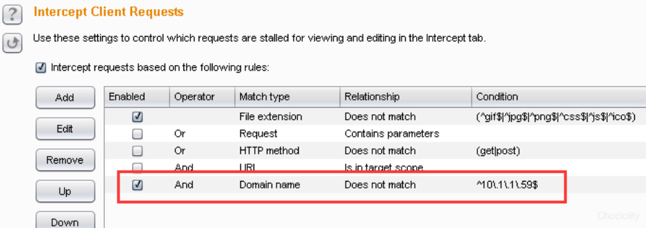 然后切换到Proxy的Options选项卡下,查看Intercept Client Requests,已增一条记录:
