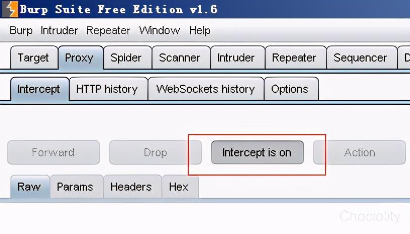 这时候,我们就建立了基本配置。 3.测试: 在burp中打开intercept is on:
