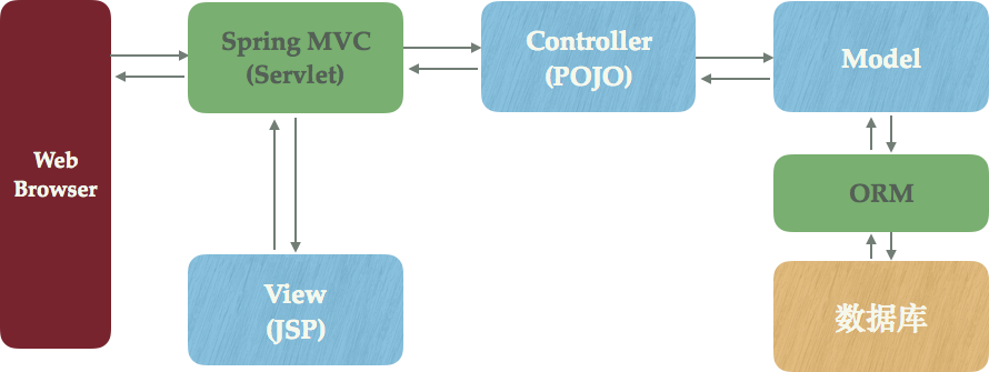 接下来就该MVC框架(以Spring MVC为例)和ORM粉墨登场了: