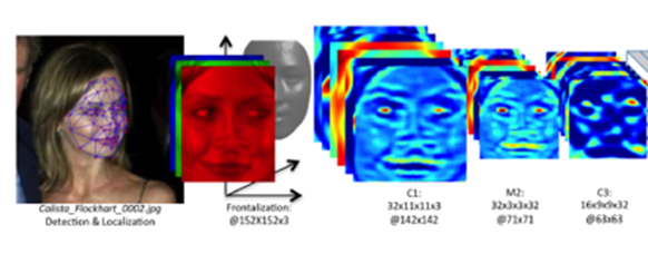 DeepFace是Facebook在2014年的CVPR上提出来的,后续出现的DeepID和FaceNet也都体现DeepFace的身影,可以说DeepFace是CNN在人脸识别的奠基之作,目前深度学习在人脸识别中也取得了非常好的效果。下边介绍DeepFace的基本框架。
