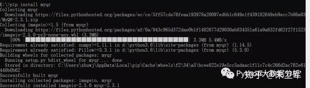 安装myqr和安装普通的python一样,很简单,使用pip安装即可