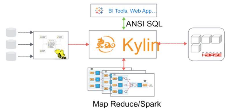 Apache kylin 能提供低延迟(sub-second latency)的秘诀就是预计算,即针对一个星型拓扑结构的数据立方体,预计算多个维度组合的度量,然后将结果保存在hbase中,对外暴露JDBC、ODBC、Rest API的查询接口,即可实现实时查询。