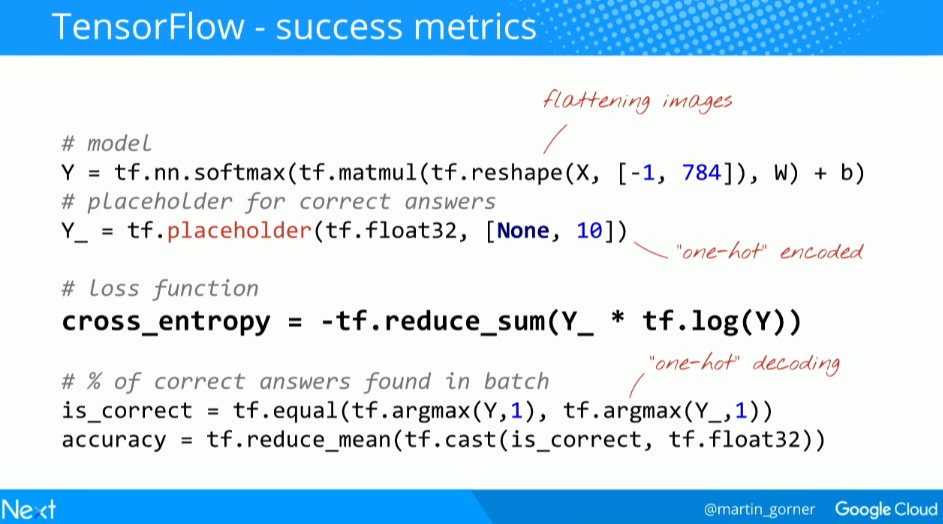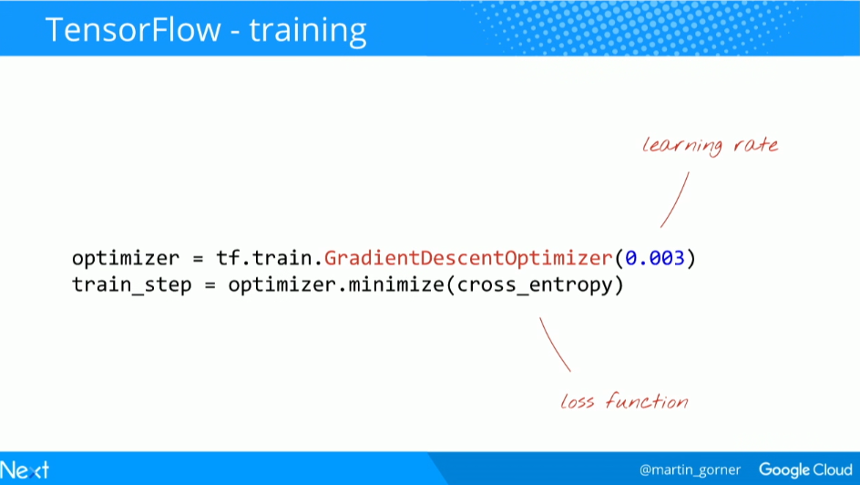 接下来,Gorner 介绍了如何对神经网络进行训练。